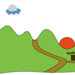 夕日と宇宙船